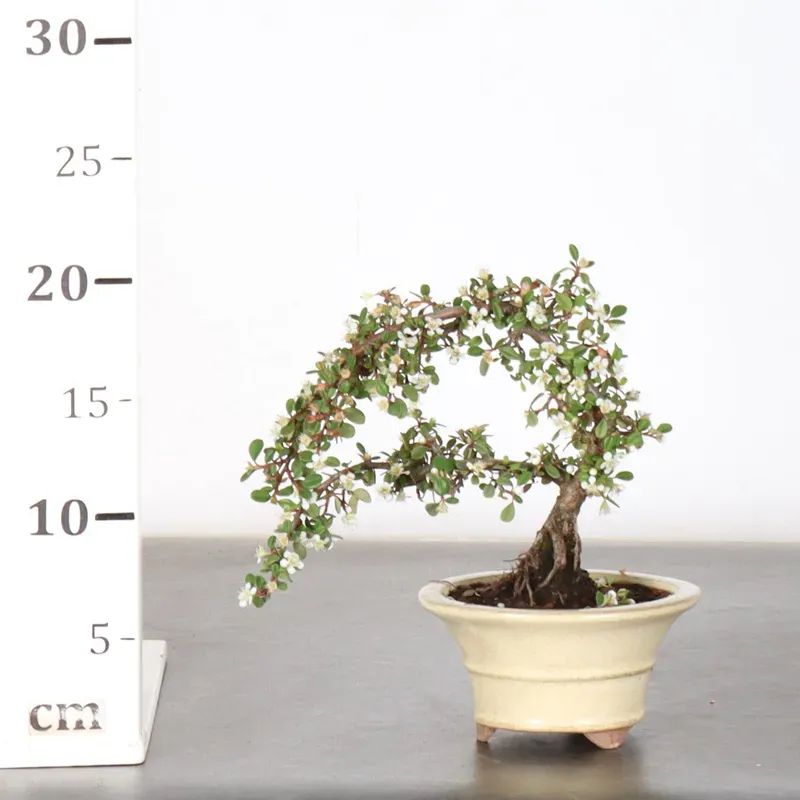 Le bonsai cotoneaster "horizontalis" est très apprécié pour ses petites feuilles et ses petites baies colorées. Les possibilités de mise en forme sont très nombreuses, sa croissance est rapide. C’est vraiment un arbre idéal pour ceux qui veulent s’initier aux différentes techniques de taille et de culture en bonsaï.