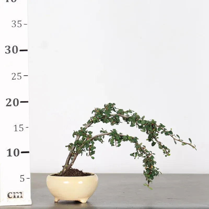 Le bonsai cotoneaster "horizontalis" est très apprécié pour ses petites feuilles et ses petites baies colorées. Les possibilités de mise en forme sont très nombreuses, sa croissance est rapide. C’est vraiment un arbre idéal pour ceux qui veulent s’initier aux différentes techniques de taille et de culture en bonsaï.