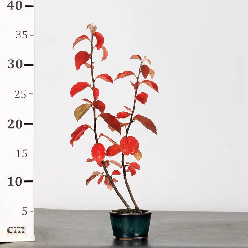 Le cognassier "cydonia oblonga" est un petit arbre fruitier idéal pour la culture en bonsaï. Il est facile à former et à ligaturer, ce qui le rend parfait pour les débutants. Son feuillage prend de belles teintes rouges et orangées à l’automne, et avec de bons soins, il peut fleurir et produire de jolis fruits parfumés au bout de quelques années.