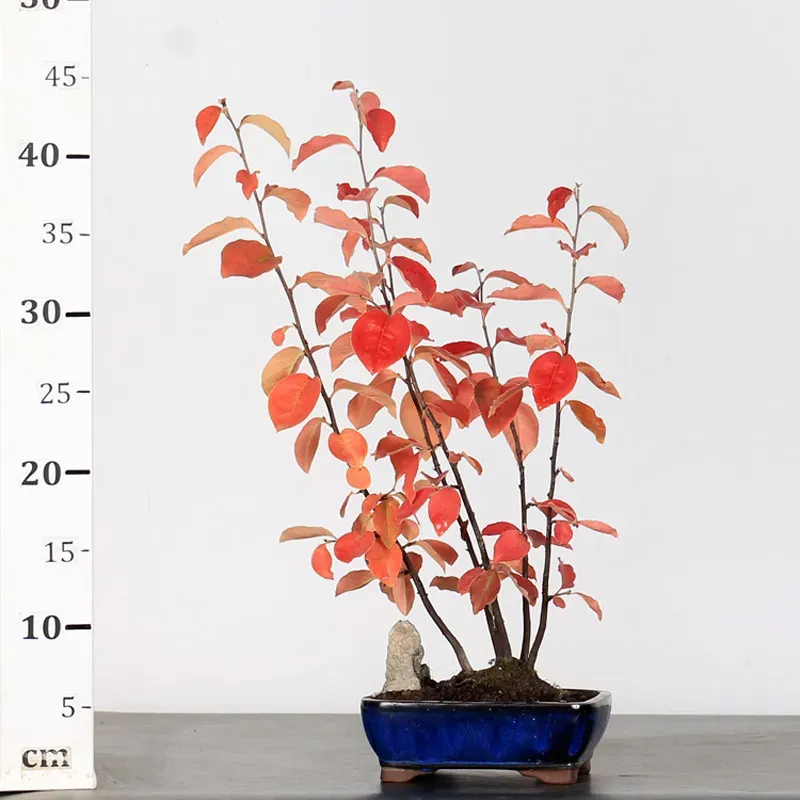 Le cognassier "cydonia oblonga" est un petit arbre fruitier idéal pour la culture en bonsaï. Il est facile à former et à ligaturer, ce qui le rend parfait pour les débutants. Son feuillage prend de belles teintes rouges et orangées à l’automne, et avec de bons soins, il peut fleurir et produire de jolis fruits parfumés au bout de quelques années.