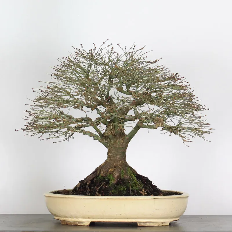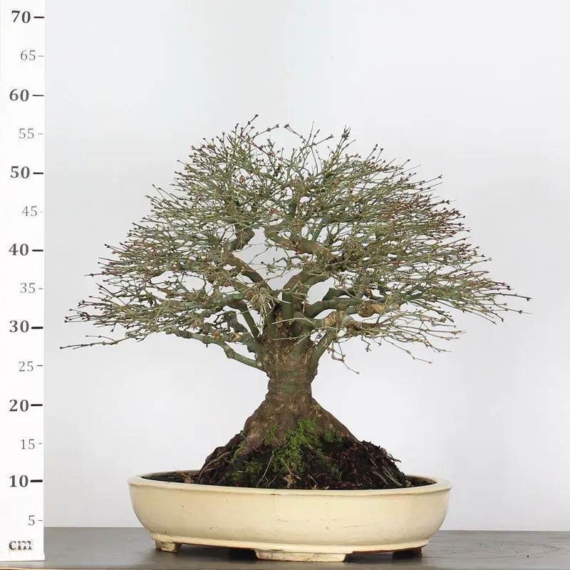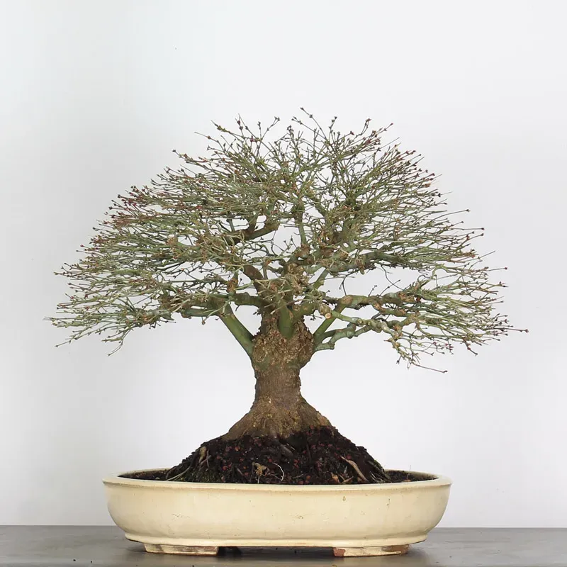 Si vous recherchez un érable en bonsaï qui sera du plus bel effet dans votre collection, ne cherchez pas plus loin ! Le Kiyohime c'est l'archétype de ce que l'on appelle la forme en balai qui évoque un arbre paisible au milieu d'un champ. Il développe rapidement une belle ramification et les changement de couleur de son feuillage est un délice. C'est le bonsai idéal à la fois pour les débutants et les amateurs plus confirmés.