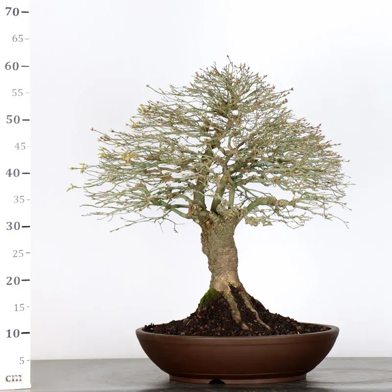 Si vous recherchez un érable en bonsaï qui sera du plus bel effet dans votre collection, ne cherchez pas plus loin ! Le Kiyohime c'est l'archétype de ce que l'on appelle la forme en balai qui évoque un arbre paisible au milieu d'un champ. Il développe rapidement une belle ramification et les changement de couleur de son feuillage est un délice. C'est le bonsai idéal à la fois pour les débutants et les amateurs plus confirmés.