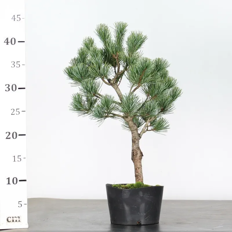 Le bonsaï pin blanc japonais est un arbre populaire en raison de ses aiguilles fines engainées par cinq, couleurs vert/bleu, il peut être façonné pour présenter des mouvements gracieux de branches et un tronc élégant, il a plutôt une croissance lente