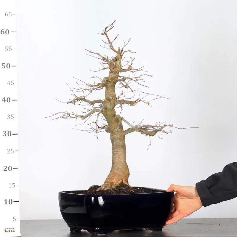 L’Erable rouge du Japon "Deshojo" en bonsaï séduit par son évolution spectaculaire au fil des saisons. Son feuillage démarre rouge profond au printemps, devient progressivement vert en été, puis se pare de superbes teintes rouge orangé à l’automne, offrant un magnifique spectacle à contempler tout au long de l’année.