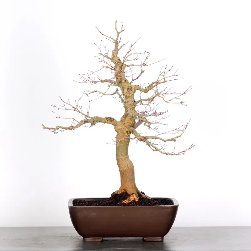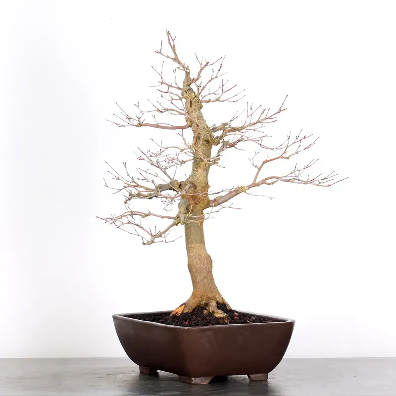 L’Erable rouge du Japon "Deshojo" en bonsaï séduit par son évolution spectaculaire au fil des saisons. Son feuillage démarre rouge profond au printemps, devient progressivement vert en été, puis se pare de superbes teintes rouge orangé à l’automne, offrant un magnifique spectacle à contempler tout au long de l’année.