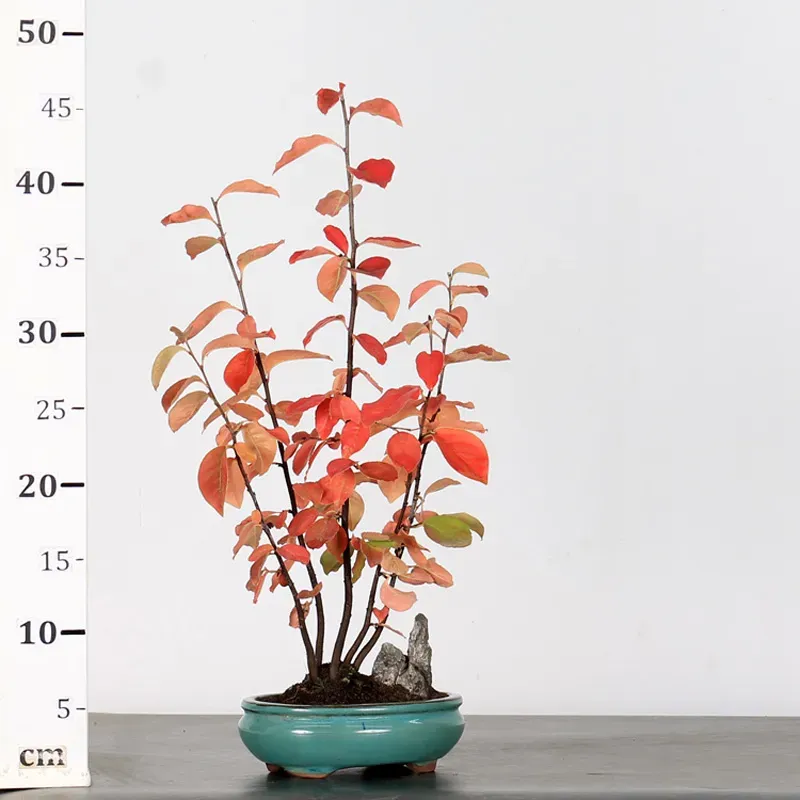 Le cognassier "cydonia oblonga" est un petit arbre fruitier idéal pour la culture en bonsaï. Il est facile à former et à ligaturer, ce qui le rend parfait pour les débutants. Son feuillage prend de belles teintes rouges et orangées à l’automne, et avec de bons soins, il peut fleurir et produire de jolis fruits parfumés au bout de quelques années.