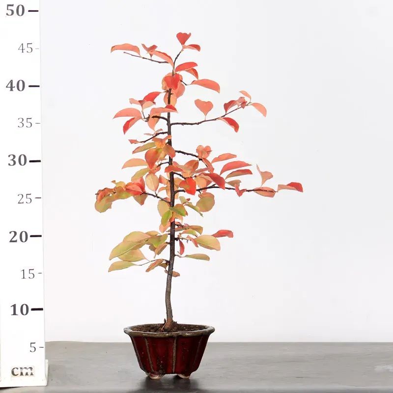 Le cognassier "cydonia oblonga" est un petit arbre fruitier idéal pour la culture en bonsaï. Il est facile à former et à ligaturer, ce qui le rend parfait pour les débutants. Son feuillage prend de belles teintes rouges et orangées à l’automne, et avec de bons soins, il peut fleurir et produire de jolis fruits parfumés au bout de quelques années.