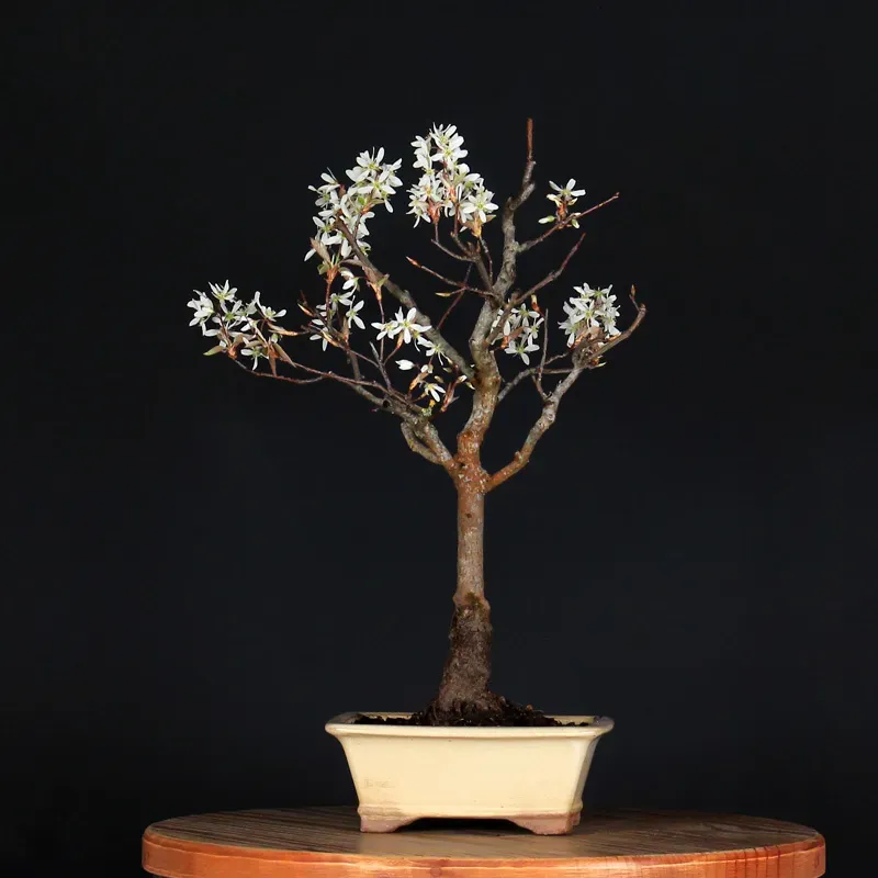 Le bonsai Amélanchier, marque l’arrivée des beaux jours avec sa floraison printanière. En période estivale, il développe un fruit bleu-noir comestible, nommé "amélanco". En automne, ces jolies feuilles deviennent d’une couleur rouge feu.