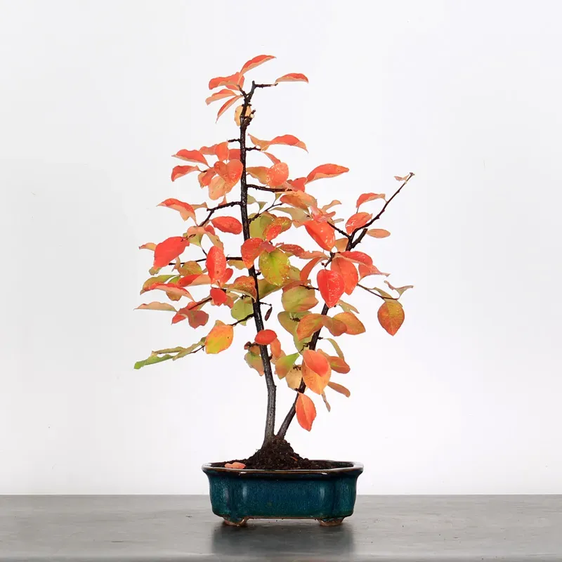 Le cognassier "cydonia oblonga" est un petit arbre fruitier idéal pour la culture en bonsaï. Il est facile à former et à ligaturer, ce qui le rend parfait pour les débutants. Son feuillage prend de belles teintes rouges et orangées à l’automne, et avec de bons soins, il peut fleurir et produire de jolis fruits parfumés au bout de quelques années.