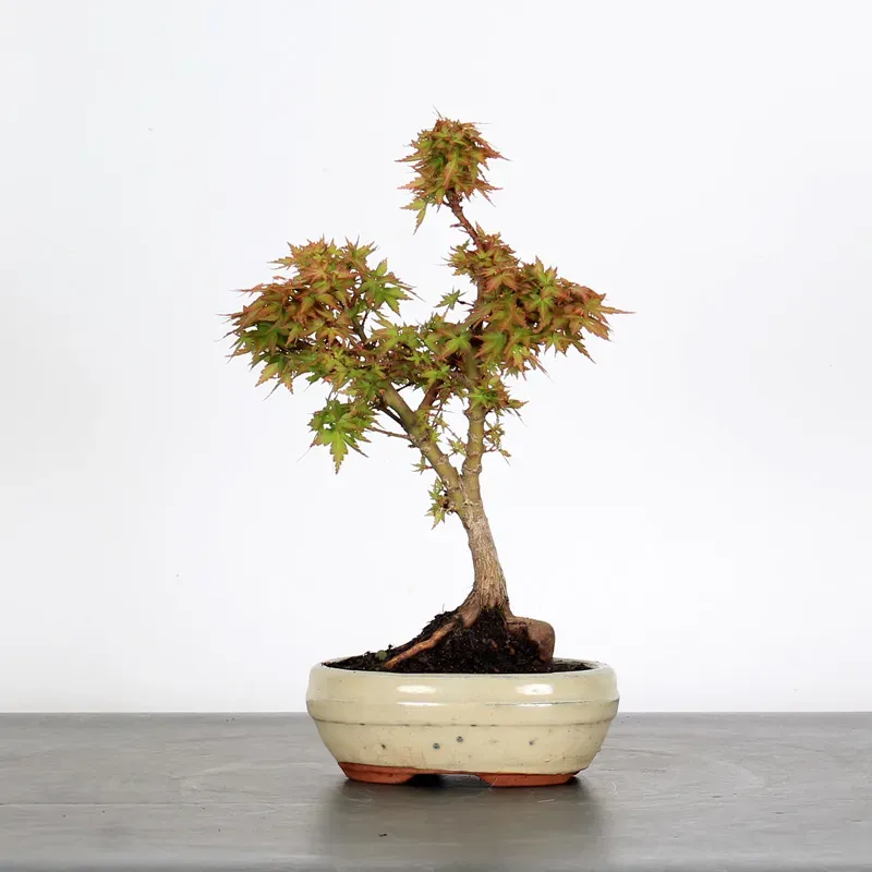 L’érable Koto Hime, Acer Palmatum Koto Himé a la particularité de faire naturellement des petites feuilles, ce qui en fait une excellente variété à cultiver en bonsaï. Nous le cultivons en pleine terre depuis des années pour vous proposer des sujets de qualité et de belles tailles.