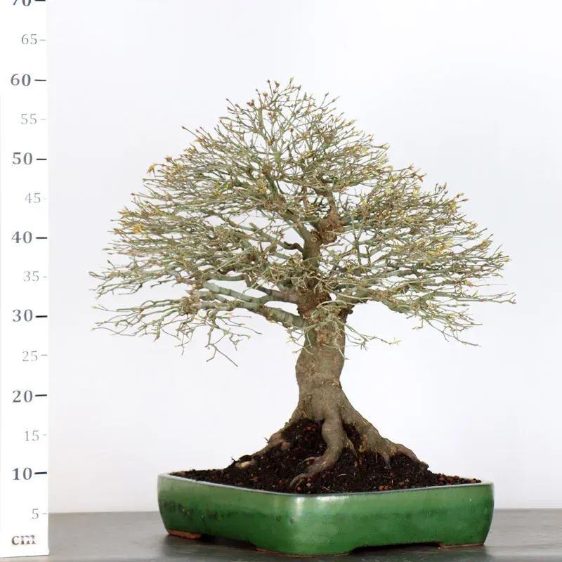 Si vous recherchez un érable en bonsaï qui sera du plus bel effet dans votre collection, ne cherchez pas plus loin ! Le Kiyohime c'est l'archétype de ce que l'on appelle la forme en balai qui évoque un arbre paisible au milieu d'un champ. Il développe rapidement une belle ramification et les changement de couleur de son feuillage est un délice. C'est le bonsai idéal à la fois pour les débutants et les amateurs plus confirmés.