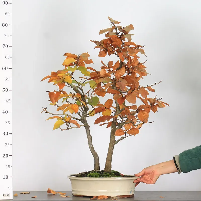 Le Hêtre est un bonsaï à feuilles caduques qui se développe en basse montagne ainsi que dans nos campagnes. Son écorce grisâtre devient davantage rugueuse lorsqu’il prend de l’âge. Son feuillage est marcescent, c’est-à-dire, qu’il demeure attaché à l’arbre même après la mort des feuilles en automne et souvent jusqu’à que le gonflement printanier des bourgeons le fasse tomber.