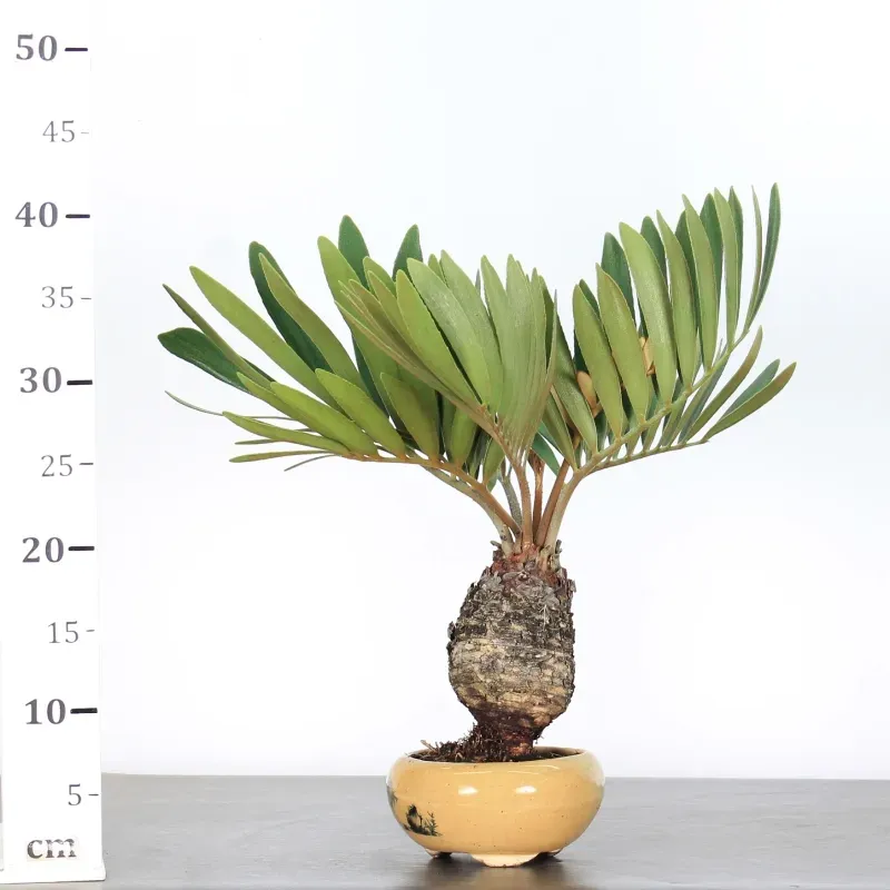 Le Zamia, Zamioculcas zamiifolia, est un arbuste au feuillage persistant, velu, dur et vert. Il est beaucoup utilisé comme plante d’intérieur, en serre ou véranda. Le zamia est originaire du Mexique, des plaines côtières sableuses et chaudes. Les Américains le nomment « Cardboard palm », soit « palmier en carton ». Il ne produit pas de fleurs mais des cônes. Il est dioïque, c’est-à-dire qu’il donne des cônes femelles aux graines rouges et des cônes mâles sur des plants séparés.