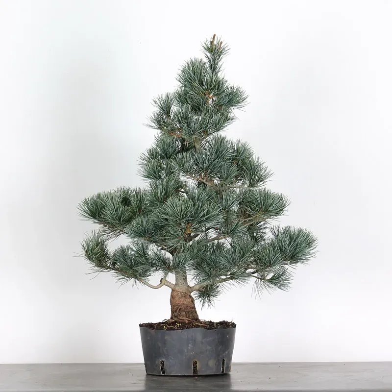 Le bonsaï pin blanc japonais "pinus pentaphylla" est un arbre populaire en raison de ses aiguilles fines engainées par cinq, couleurs vert/bleu, il peut être façonné pour présenter des mouvements gracieux de branches et un tronc élégant, il a plutôt une croissance lente