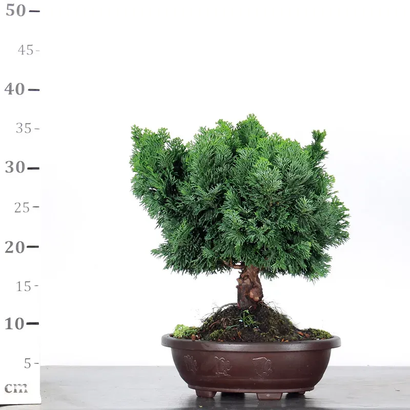Le bonsai faux cyprès du Japon "Chamaecyparis obtusa Nana Gracilis" est un conifère rustique au feuillage dense et écailleux, très apprécié pour son port original et son élégance d’inspiration japonaise. Son bois souple se prête bien à la ligature, ce qui en fait un excellent sujet pour le bonsaï. Persistant, il conserve son feuillage vert toute l’année et supporte bien le froid.