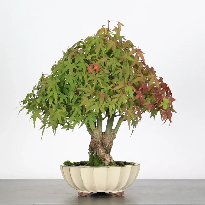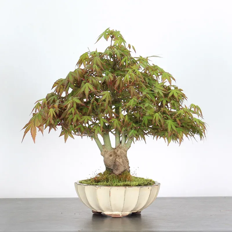 L’Erable du japon "palmatum" est ce que l’on appelle une variété souche, c'est elle qui sert souvent de porte-greffe aux autres variétés. C'est la plus résistante et la plus vigoureuse. Son feuillage est vert rosé au printemps, et devient rouge à l'automne.