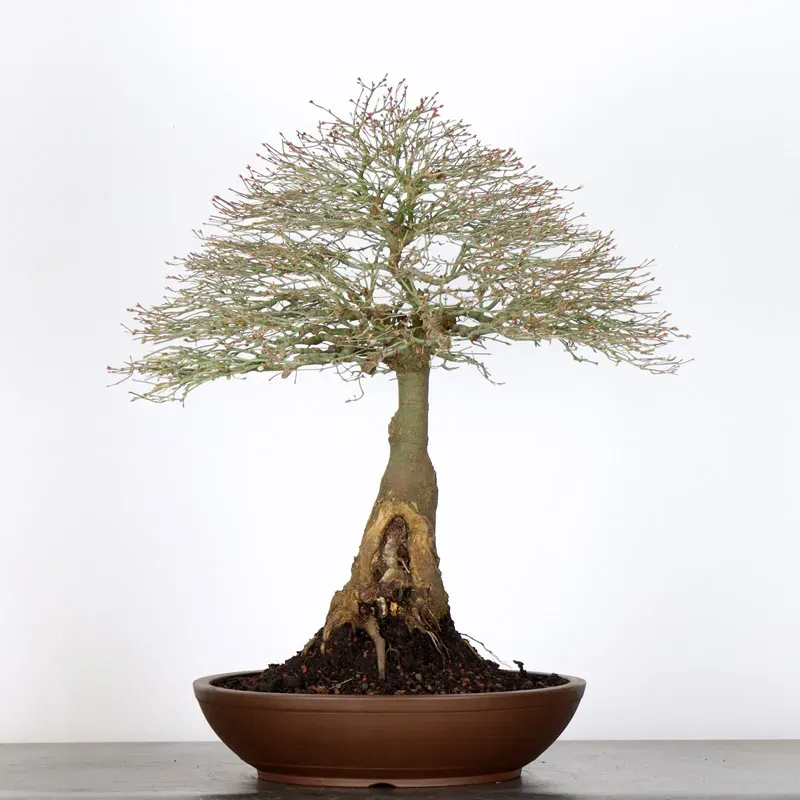 L’Erable Kiyohime est certainement la variété que nous apprécions le plus parmi les érables en bonsaï. Son port naturel en boule et sa densification rapide en font un bonsaï très gratifiant car il a tout de suite l'apparence d'un arbre nain dans son pot.