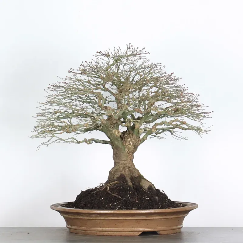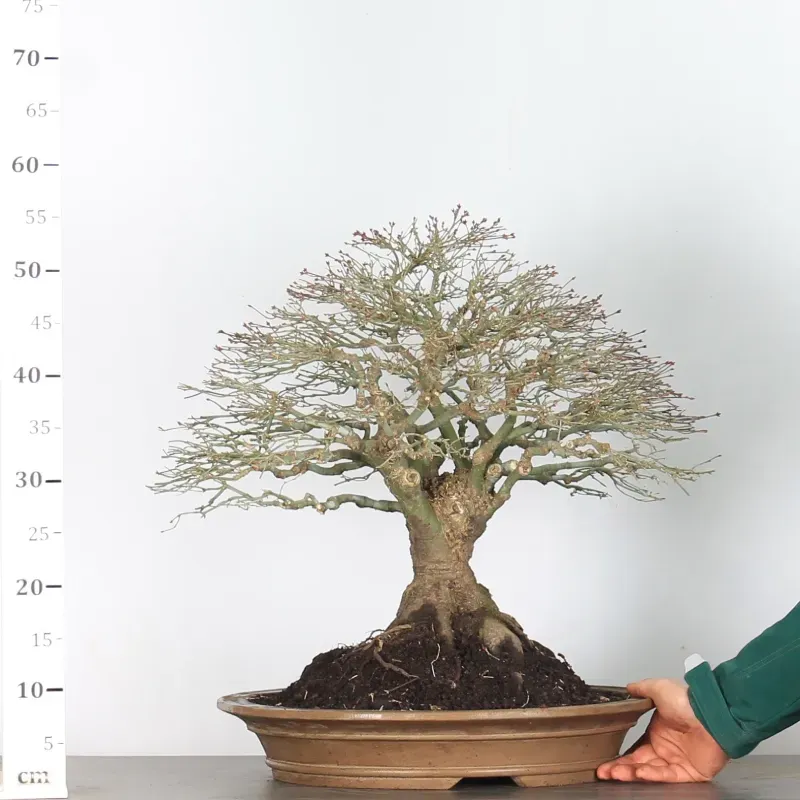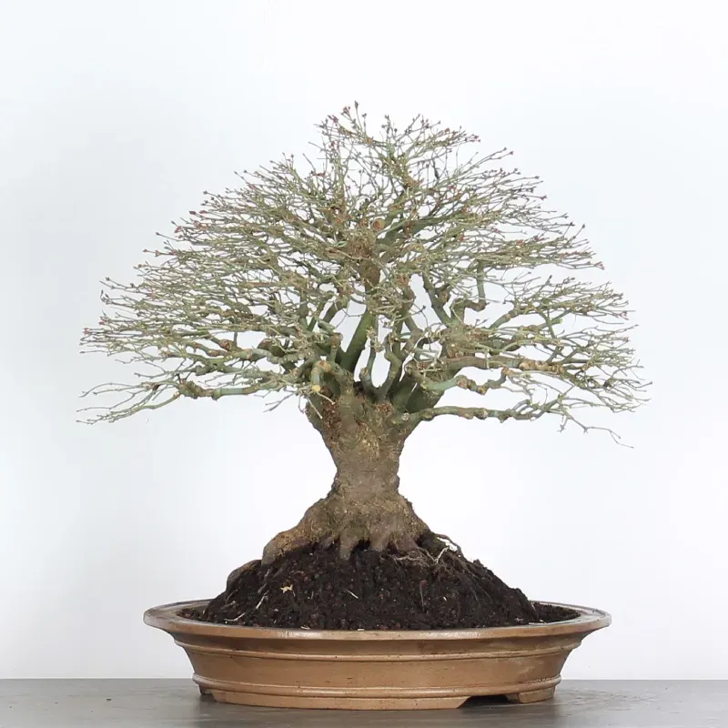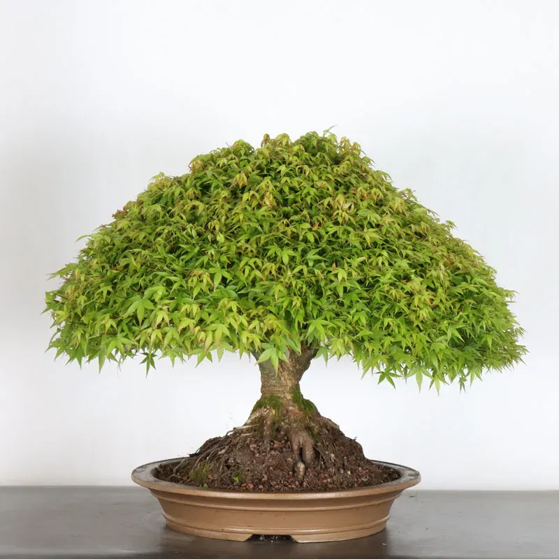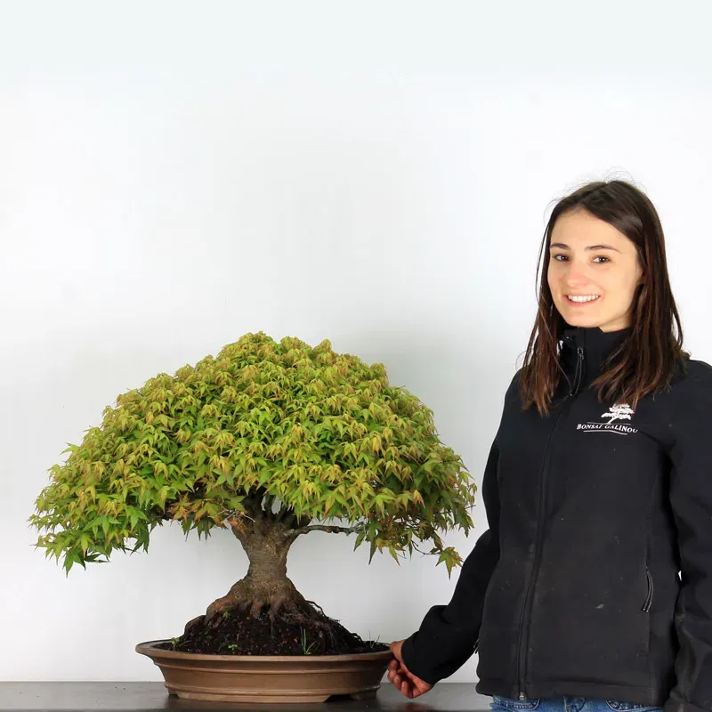 L’Erable Kiyohime est certainement la variété que nous apprécions le plus parmi les érables en bonsaï. Son port naturel en boule et sa densification rapide en font un bonsaï très gratifiant car il a tout de suite l'apparence d'un arbre nain dans son pot. Il passe du orange/vert au printemps, tout vert l'été et rouge/jaune à l'automne.