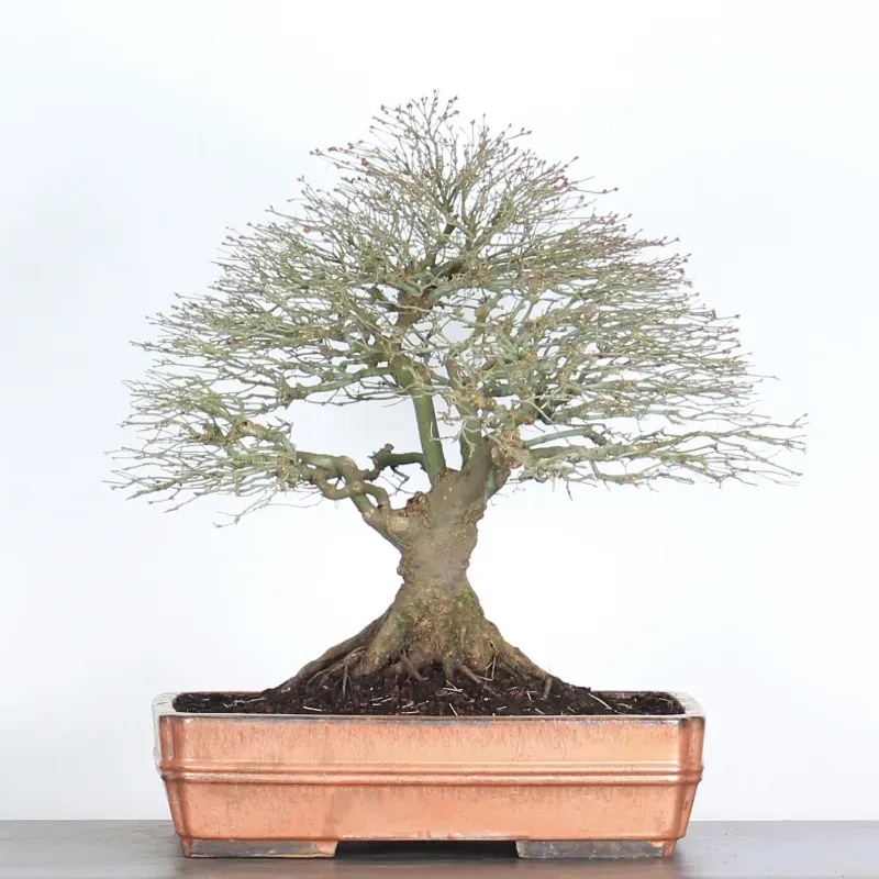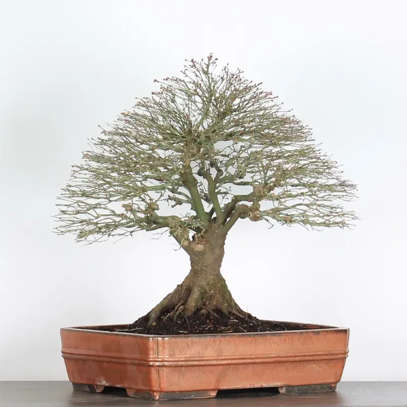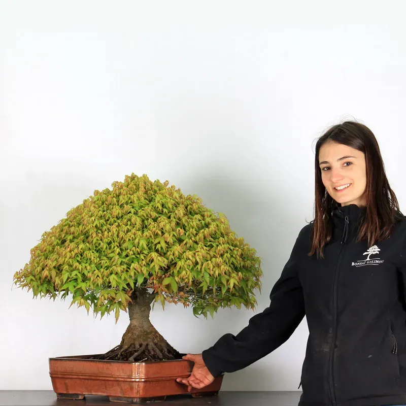 L’Erable Kiyohime est certainement la variété que nous apprécions le plus parmi les érables en bonsaï. Son port naturel en boule et sa densification rapide en font un bonsaï très gratifiant car il a tout de suite l'apparence d'un arbre nain dans son pot. Il passe du orange/vert au printemps, tout vert l'été et rouge/jaune à l'automne.