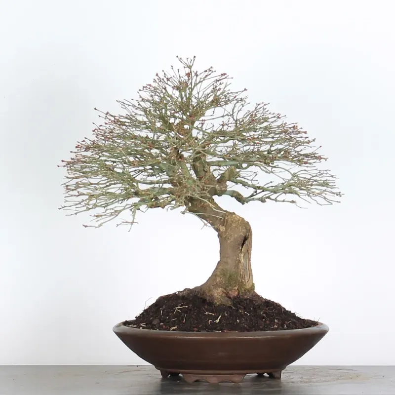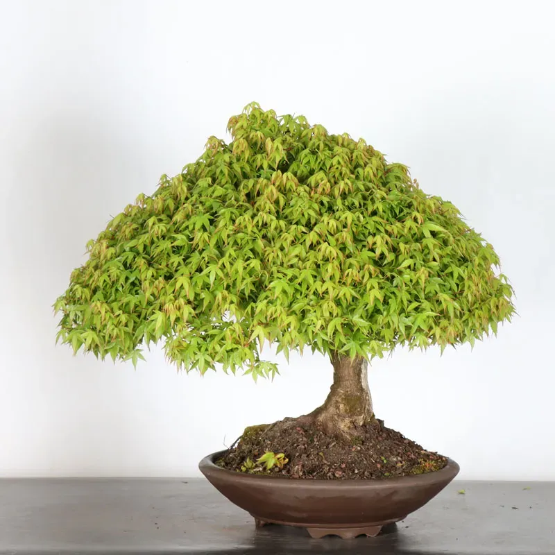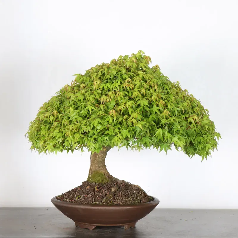 L’Erable Kiyohime est certainement la variété que nous apprécions le plus parmi les érables en bonsaï. Son port naturel en boule et sa densification rapide en font un bonsaï très gratifiant car il a tout de suite l'apparence d'un arbre nain dans son pot. Il passe du orange/vert au printemps, tout vert l'été et rouge/jaune à l'automne.