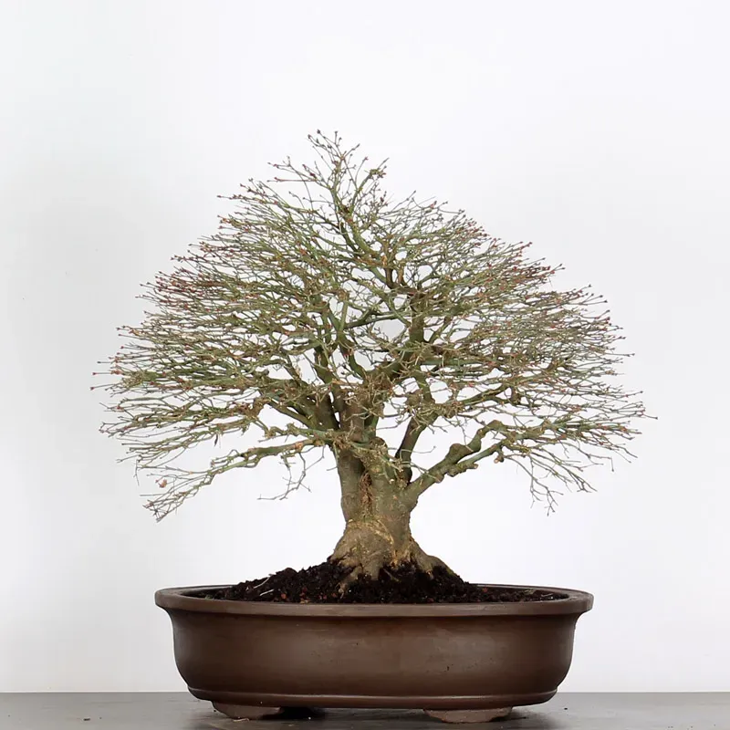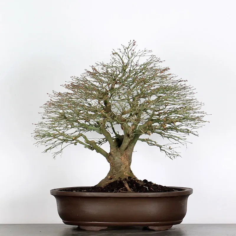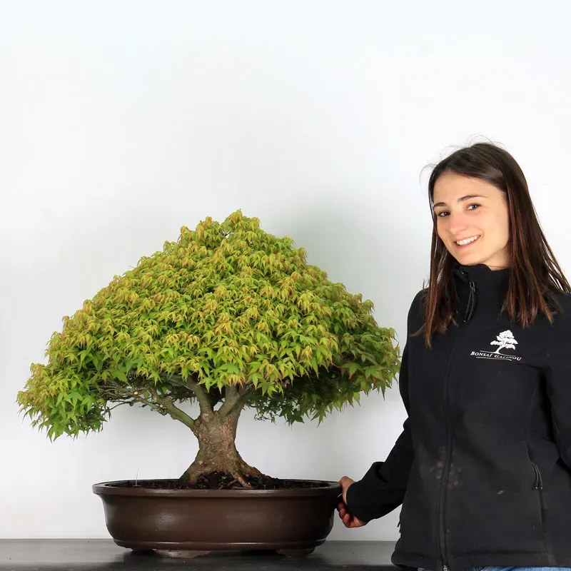 L’Erable Kiyohime est certainement la variété que nous apprécions le plus parmi les érables en bonsaï. Son port naturel en boule et sa densification rapide en font un bonsaï très gratifiant car il a tout de suite l'apparence d'un arbre nain dans son pot. Il passe du orange/vert au printemps, tout vert l'été et rouge/jaune à l'automne.