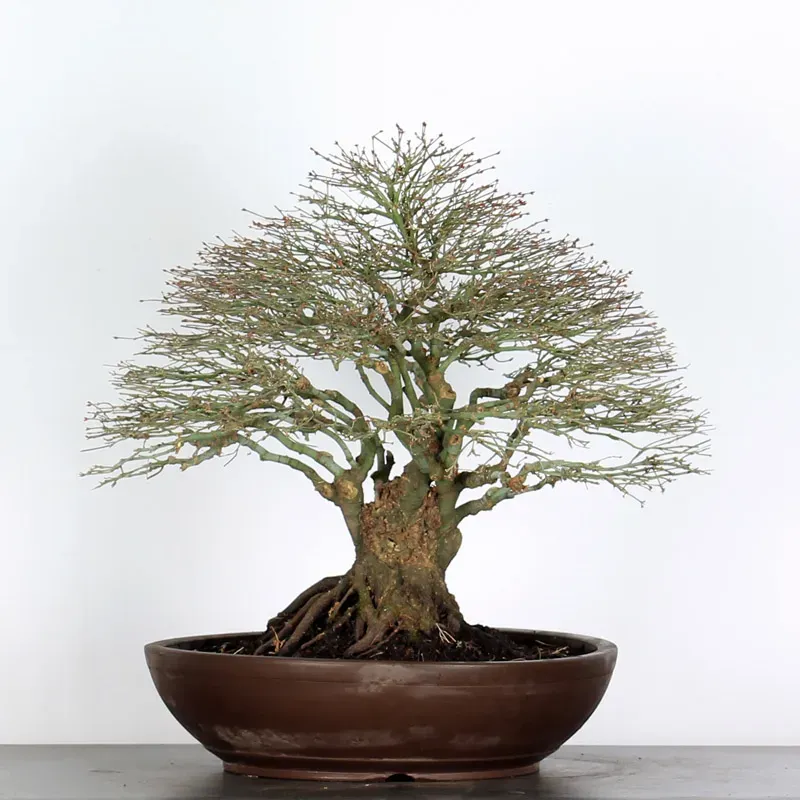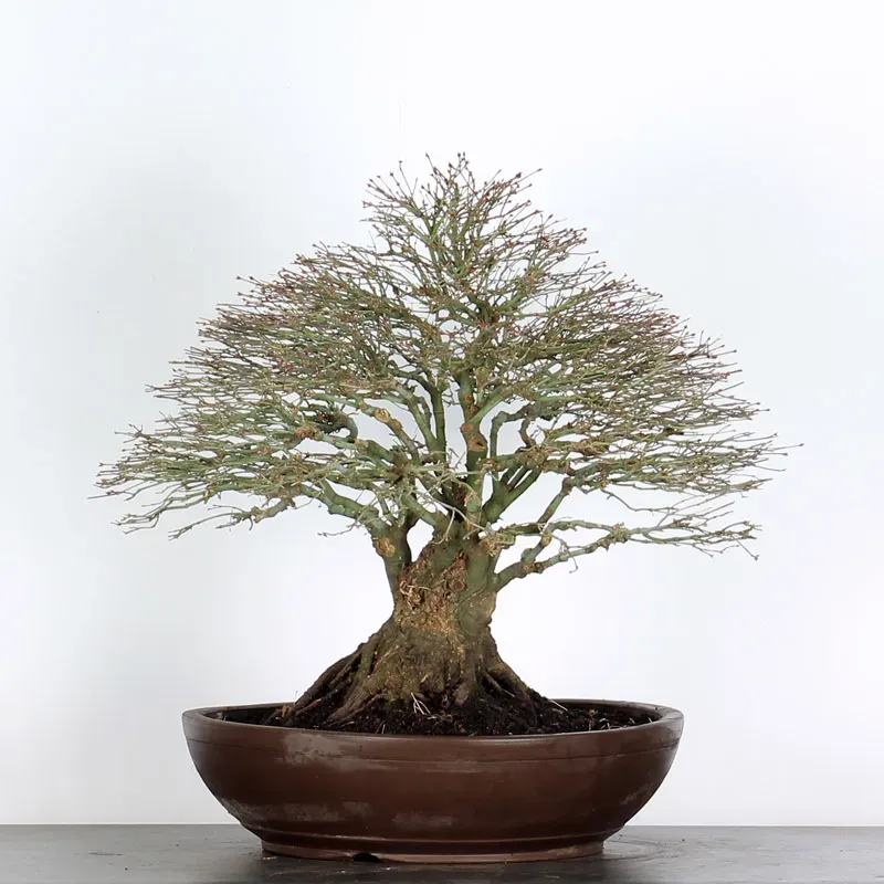 L’Erable Kiyohime est une variété typique à la forme arrondie. Au printemps, il est l’un des premiers à débourrer avec des petites feuilles rougeâtres. Il se couvre rapidement de feuilles finement découpées