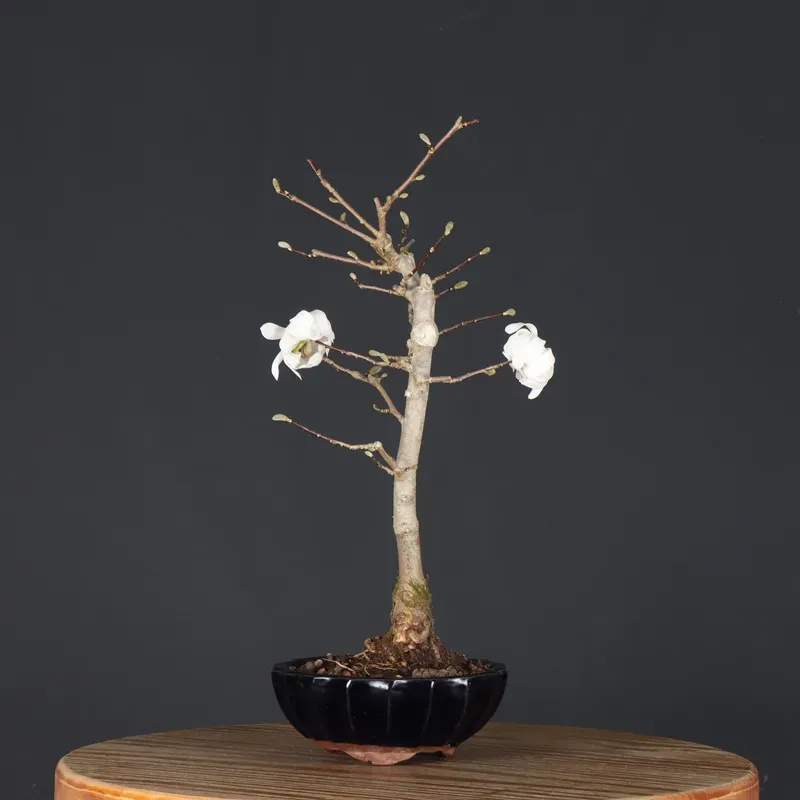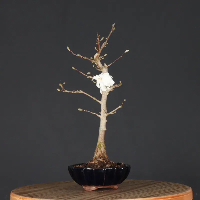 Le bonsai magnolia étoilé "Magnolia stellata" ne passe pas inaperçu avec ses fleurs étoilées blanches. Elles apparaissent en mars/avril avant les feuilles. C'est un des magnolias les plus florifères. Il est légèrement parfumé