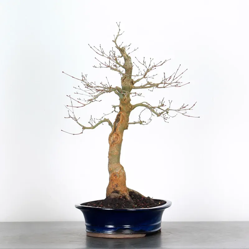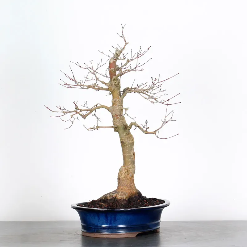 L’Erable rouge du Japon "Deshojo" en bonsaï séduit par son évolution spectaculaire au fil des saisons. Son feuillage démarre rouge profond au printemps, devient progressivement vert en été, puis se pare de superbes teintes rouge orangé à l’automne, offrant un magnifique spectacle à contempler tout au long de l’année.