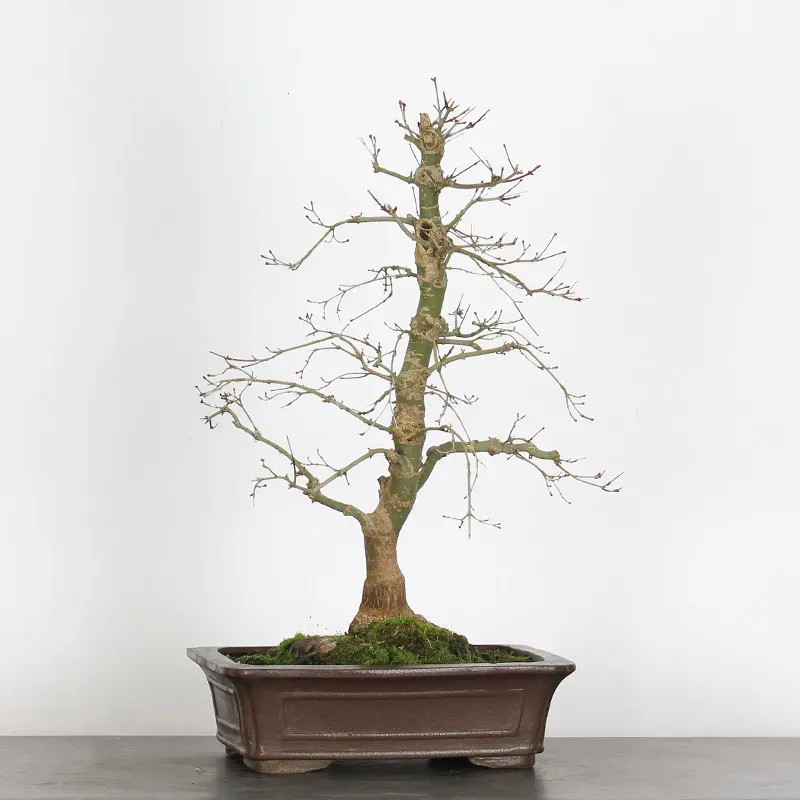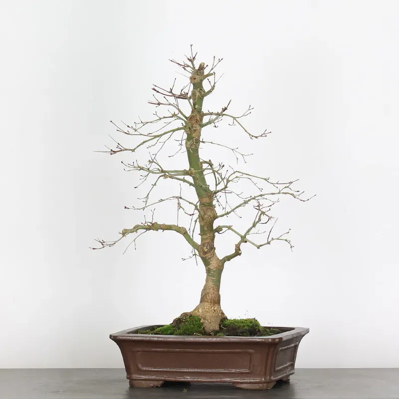 L’Erable rouge du Japon "Deshojo" en bonsaï séduit par son évolution spectaculaire au fil des saisons. Son feuillage démarre rouge profond au printemps, devient progressivement vert en été, puis se pare de superbes teintes rouge orangé à l’automne, offrant un magnifique spectacle à contempler tout au long de l’année.