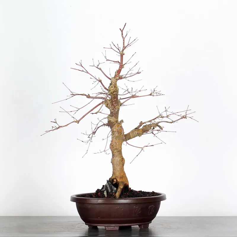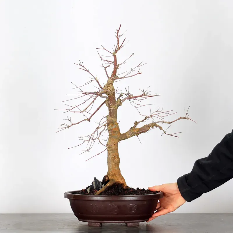 L’Erable rouge du Japon "Deshojo" en bonsaï séduit par son évolution spectaculaire au fil des saisons. Son feuillage démarre rouge profond au printemps, devient progressivement vert en été, puis se pare de superbes teintes rouge orangé à l’automne, offrant un magnifique spectacle à contempler tout au long de l’année.