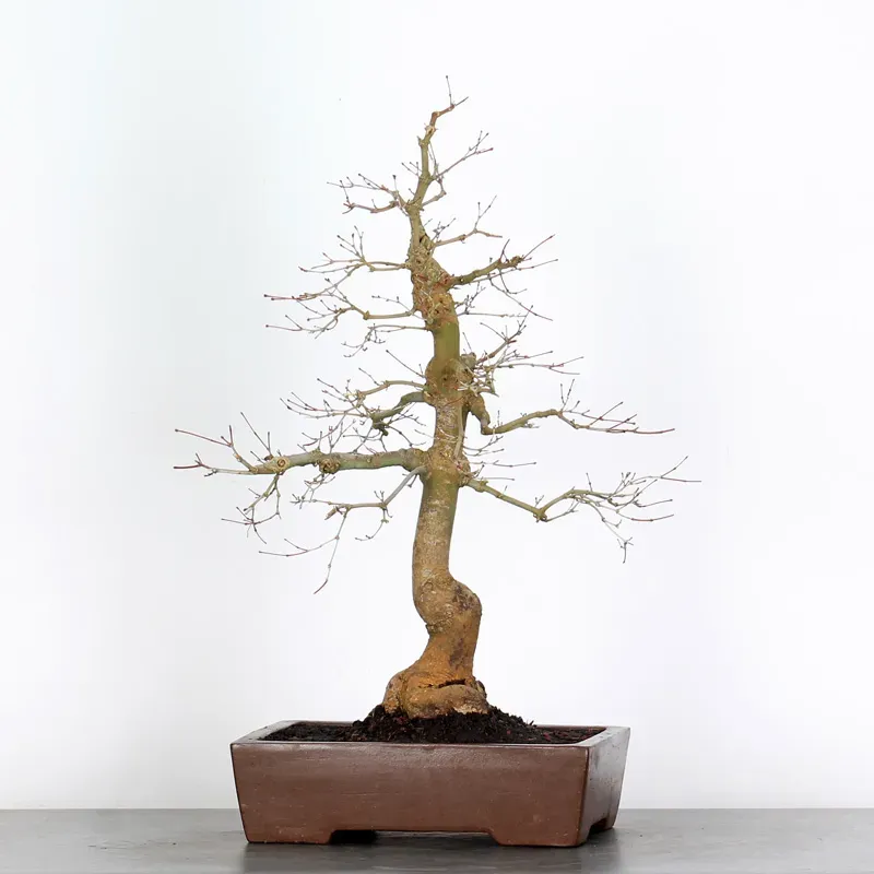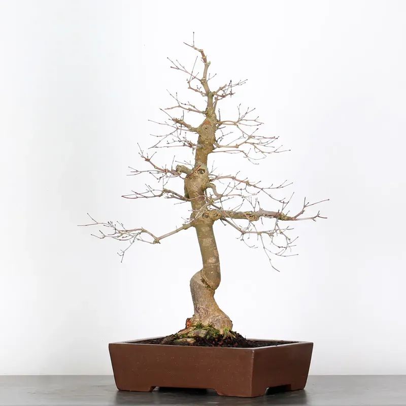 L’Erable rouge du Japon "Deshojo" en bonsaï séduit par son évolution spectaculaire au fil des saisons. Son feuillage démarre rouge profond au printemps, devient progressivement vert en été, puis se pare de superbes teintes rouge orangé à l’automne, offrant un magnifique spectacle à contempler tout au long de l’année.