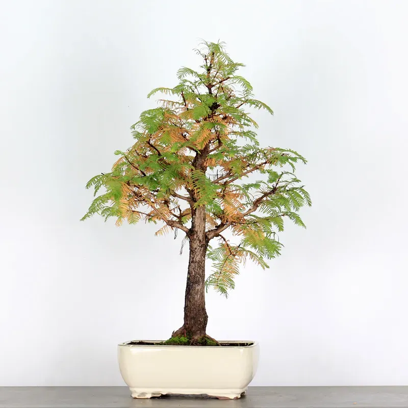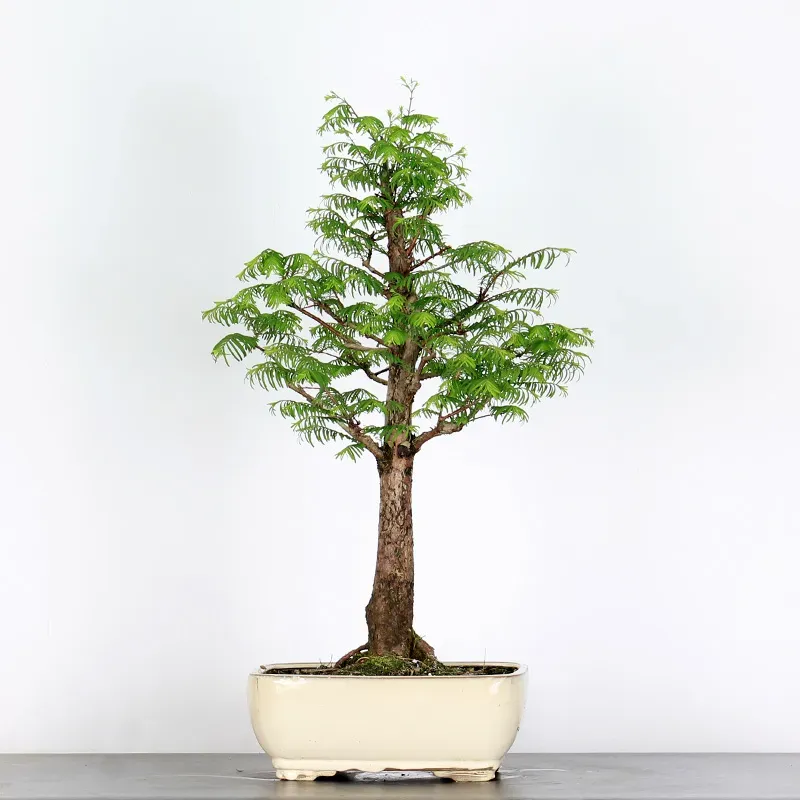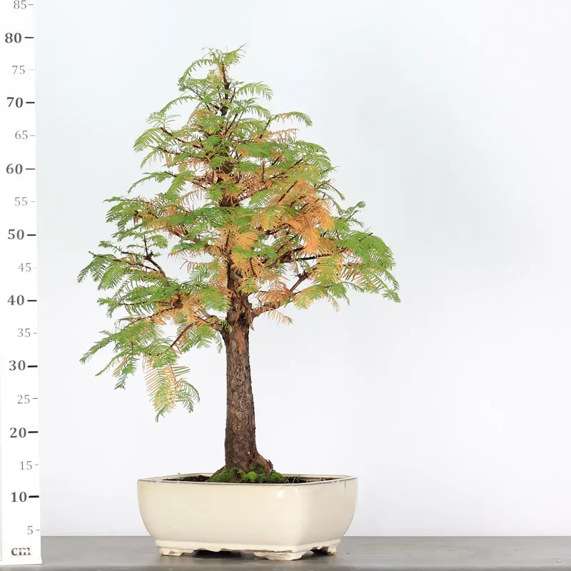 Le métaséquoia également appelé Séquoia du japon ou sapin d'eau est un bonsaï originaire de Chine que l’on croyait définitivement disparue sur terre. Il défraya la chronique lors de sa découverte en 1941 dans la région du Sichuan en Chine. Le métaséquoia est connu pour sa croissance rapide, sa forme conique élégante et ses feuilles en forme d'aiguille vert clair qui virent au bronze à l'automne avant de tomber.