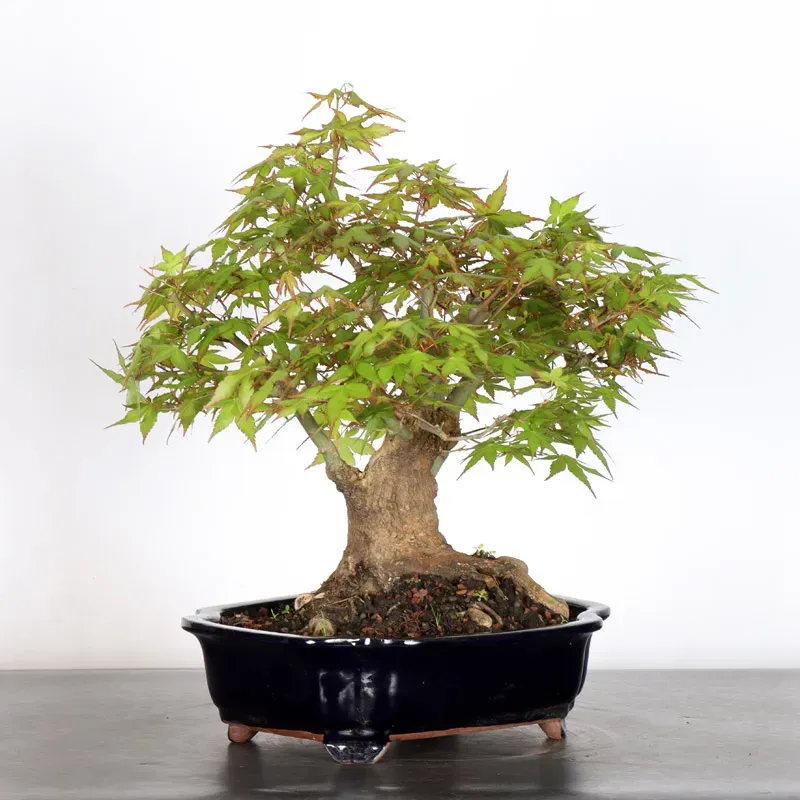 L’Erable du japon "palmatum" , variété dite "souche", reconnue pour sa vigueur, sa résistance et son rôle fréquent de porte-greffe pour les cultivars plus délicats. Variété idéale pour les amateurs souhaitant débuter un travail de bonsaï grâce à sa robustesse et sa croissance régulière. Feuillage vert rosé au printemps, il évolue vers un rouge flamboyant à l’automne, offrant un spectacle saisonnier unique.