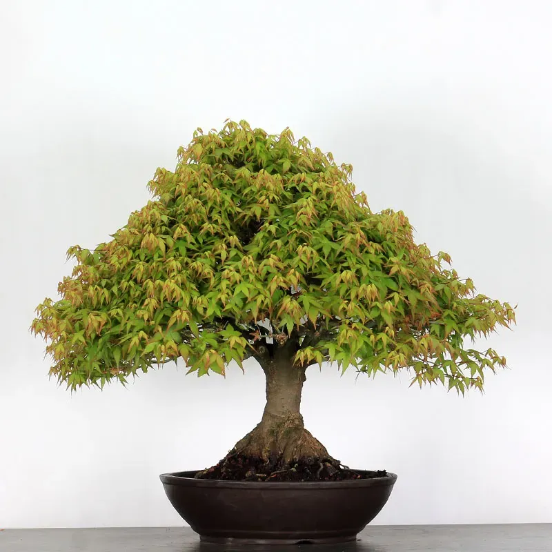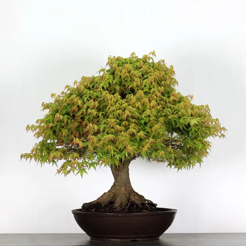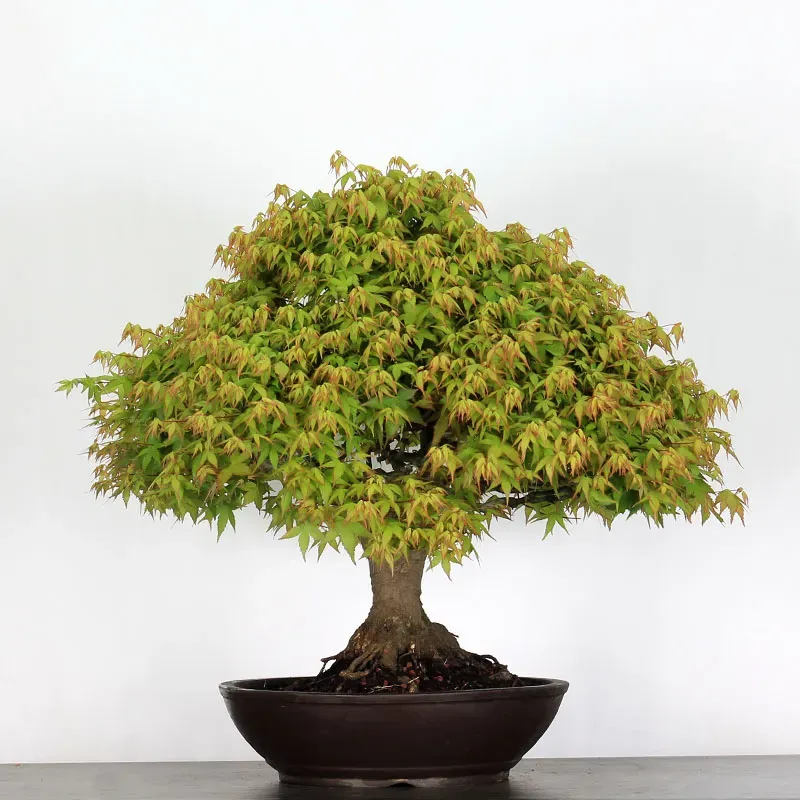 L’Erable Kiyohime est certainement la variété que nous apprécions le plus parmi les érables en bonsaï. Son port naturel en boule et sa densification rapide en font un bonsaï très gratifiant car il a tout de suite l'apparence d'un arbre nain dans son pot. Il passe du orange/vert au printemps, tout vert l'été et rouge/jaune à l'automne.