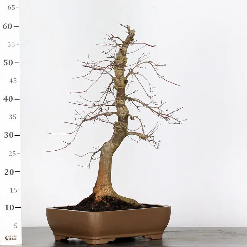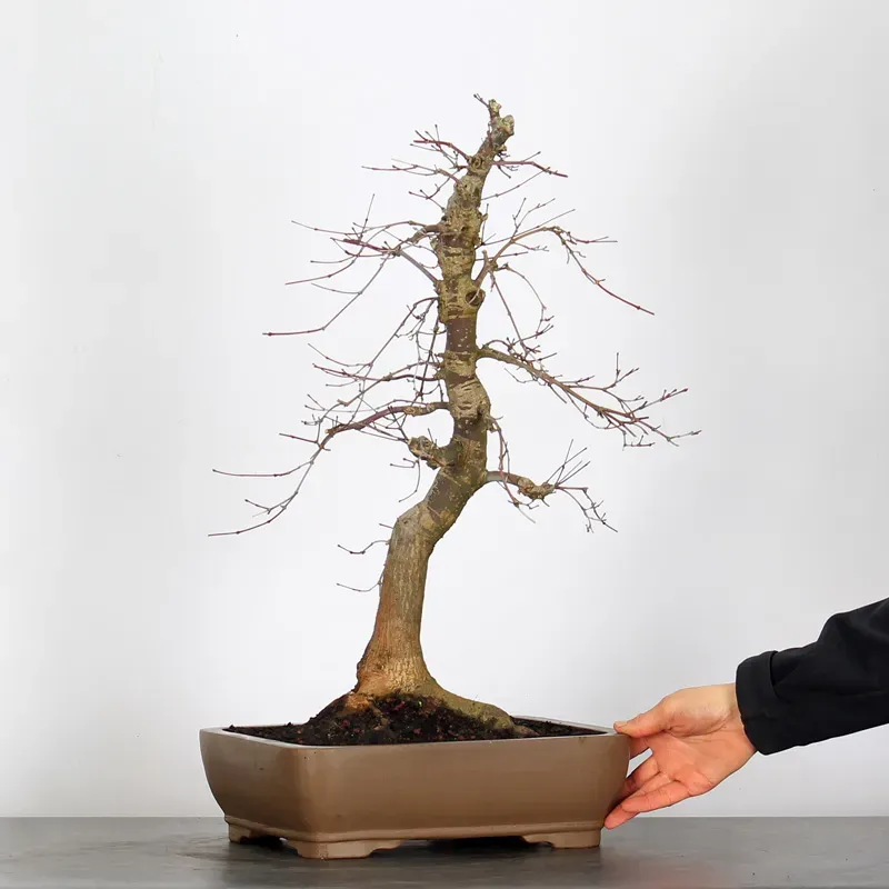 L’Erable rouge du Japon "Deshojo" en bonsaï séduit par son évolution spectaculaire au fil des saisons. Son feuillage démarre rouge profond au printemps, devient progressivement vert en été, puis se pare de superbes teintes rouge orangé à l’automne, offrant un magnifique spectacle à contempler tout au long de l’année.