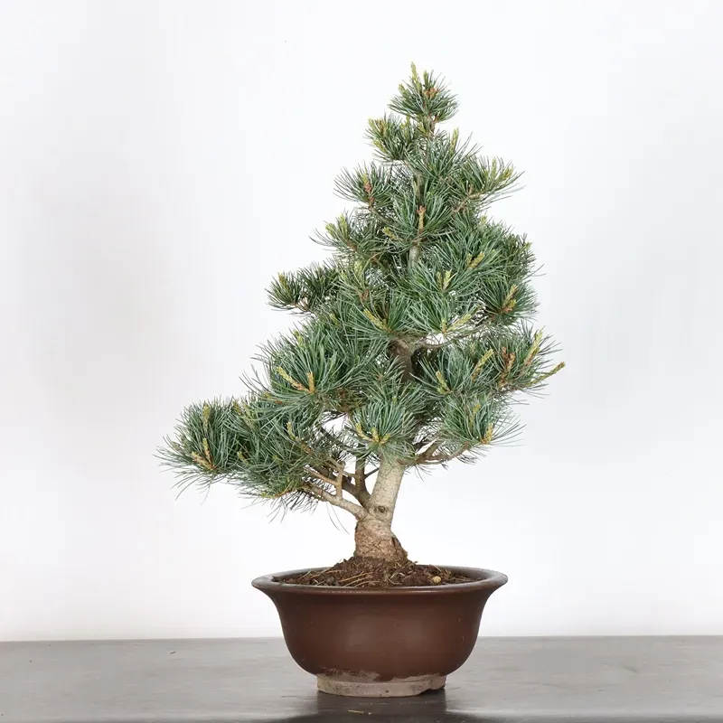 Le bonsaï pin blanc japonais est un arbre populaire en raison de ses aiguilles fines engainées par cinq, couleurs vert/bleu, il peut être façonné pour présenter des mouvements gracieux de branches et un tronc élégant, il a plutôt une croissance lente