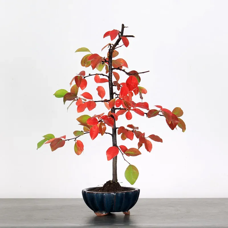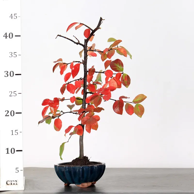 Le cognassier "cydonia oblonga" est un petit arbre fruitier idéal pour la culture en bonsaï. Il est facile à former et à ligaturer, ce qui le rend parfait pour les débutants. Son feuillage prend de belles teintes rouges et orangées à l’automne, et avec de bons soins, il peut fleurir et produire de jolis fruits parfumés au bout de quelques années.