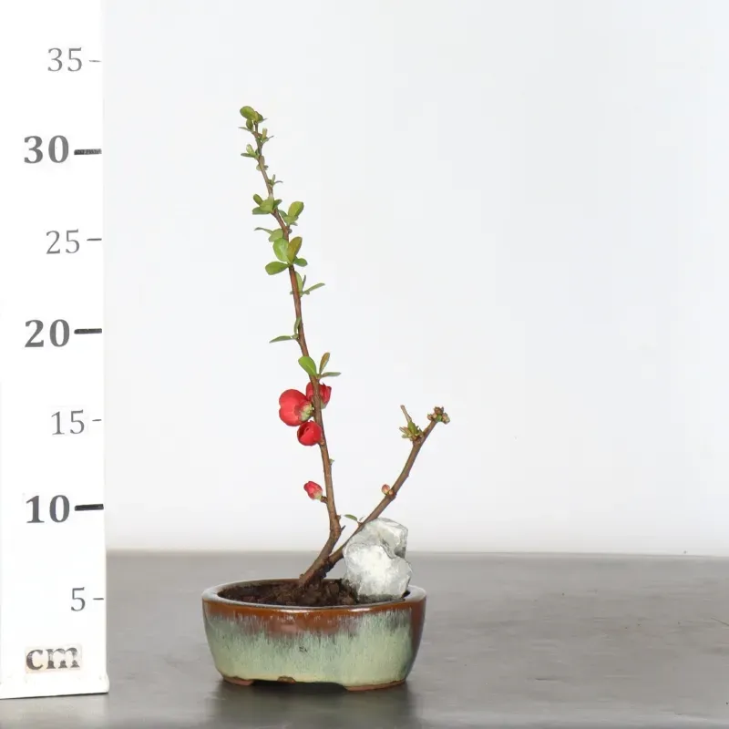 Le cognassier du Japon "Chaenomeles Japonica" est un bonsaï très apprécié pour ses magnifiques petites fleurs de couleur rose, rouge ou blanche qui se développent tôt, à partir du mois de février.