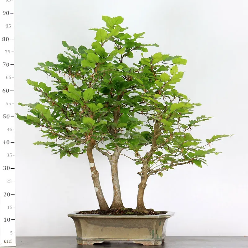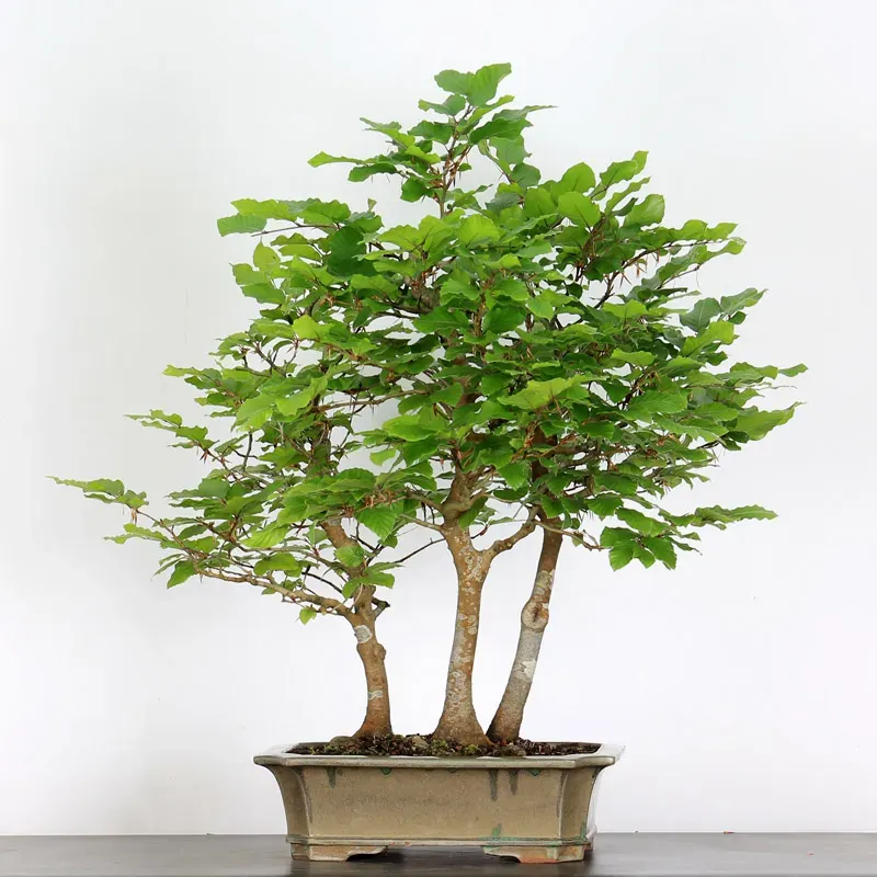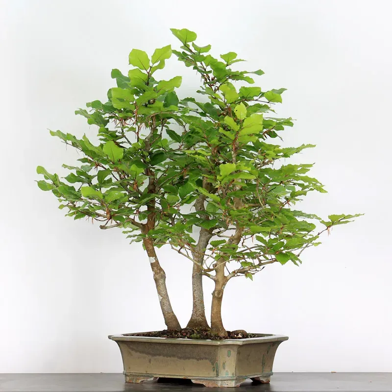 Le Hêtre est un bonsaï à feuilles caduques qui se développe en basse montagne ainsi que dans nos campagnes. Son écorce grisâtre devient davantage rugueuse lorsqu’il prend de l’âge. Son feuillage est marcescent, c’est-à-dire, qu’il demeure attaché à l’arbre même après la mort des feuilles en automne et souvent jusqu’à que le gonflement printanier des bourgeons le fasse tomber.