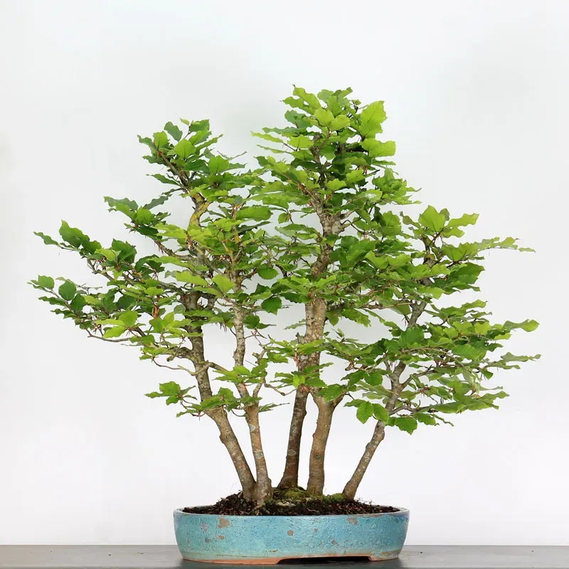 Le Hêtre est un bonsaï à feuilles caduques qui se développe en basse montagne ainsi que dans nos campagnes. Son écorce grisâtre devient davantage rugueuse lorsqu’il prend de l’âge. Son feuillage est marcescent, c’est-à-dire, qu’il demeure attaché à l’arbre même après la mort des feuilles en automne et souvent jusqu’à que le gonflement printanier des bourgeons le fasse tomber.