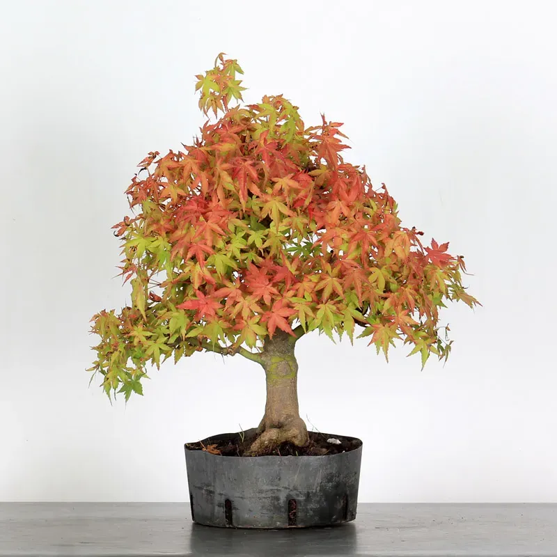 Prébonsaï Érable du Japon "palmatum", variété dite "souche", reconnue pour sa vigueur, sa résistance et son rôle fréquent de porte-greffe pour les cultivars plus délicats. Variété idéale pour les amateurs souhaitant débuter un travail de bonsaï grâce à sa robustesse et sa croissance régulière.