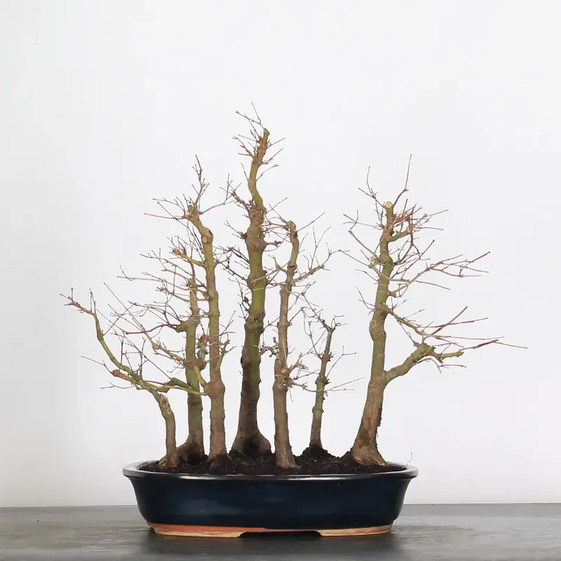 Si vous aimez les groupes et les forêts en bonsaï, les érables palmatum sont parmi les plus adaptés. C'est l'espèce emblématique pour la création de ces compositions. Avec des pincements et tailles, en quelques année, vous obtiendrez une magnifique ramification.