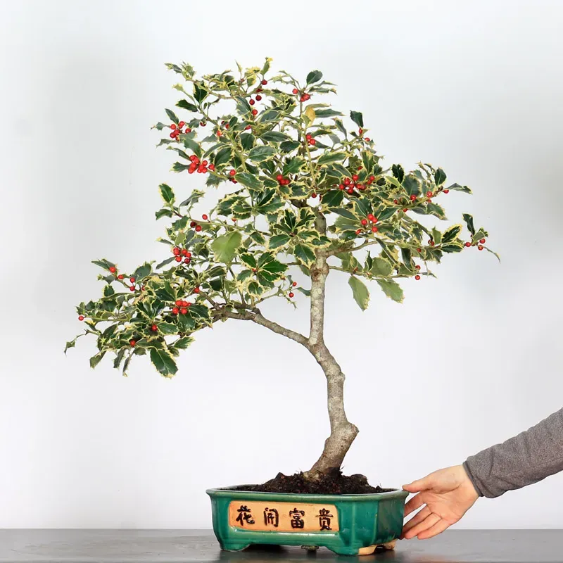 Le bonsaï Houx "Ilex aquifolium argentea marginata" est un arbuste à feuillage persistant, qui se distingue par ses feuilles vert foncé et sa structure compacte. Selon les variétés, il produit de petites baies rouges décoratives en automne et en hiver. Apprécié pour sa résistance au froid, il s’adapte bien aux climats tempérés. Un bonsaï décoratif et intemporel, parfait pour les amateurs comme pour les passionnés.