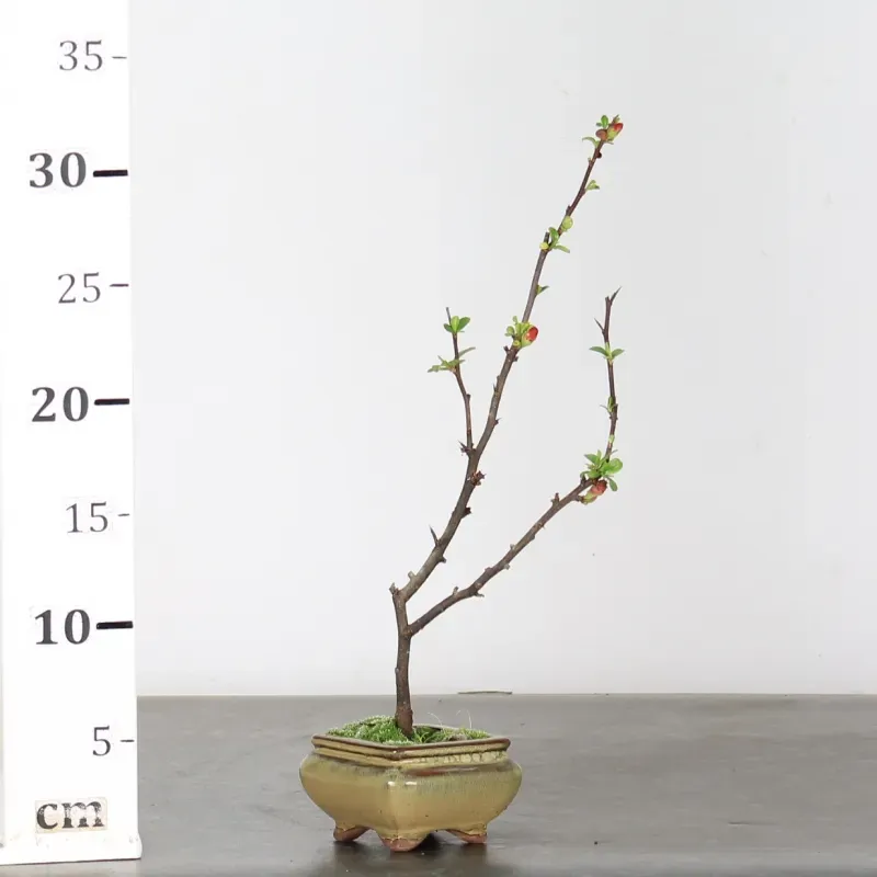 Le cognassier du Japon "Chaenomeles Japonica" est un bonsaï très apprécié pour ses magnifiques petites fleurs de couleur rose, rouge ou blanche qui se développent tôt, à partir du mois de février.