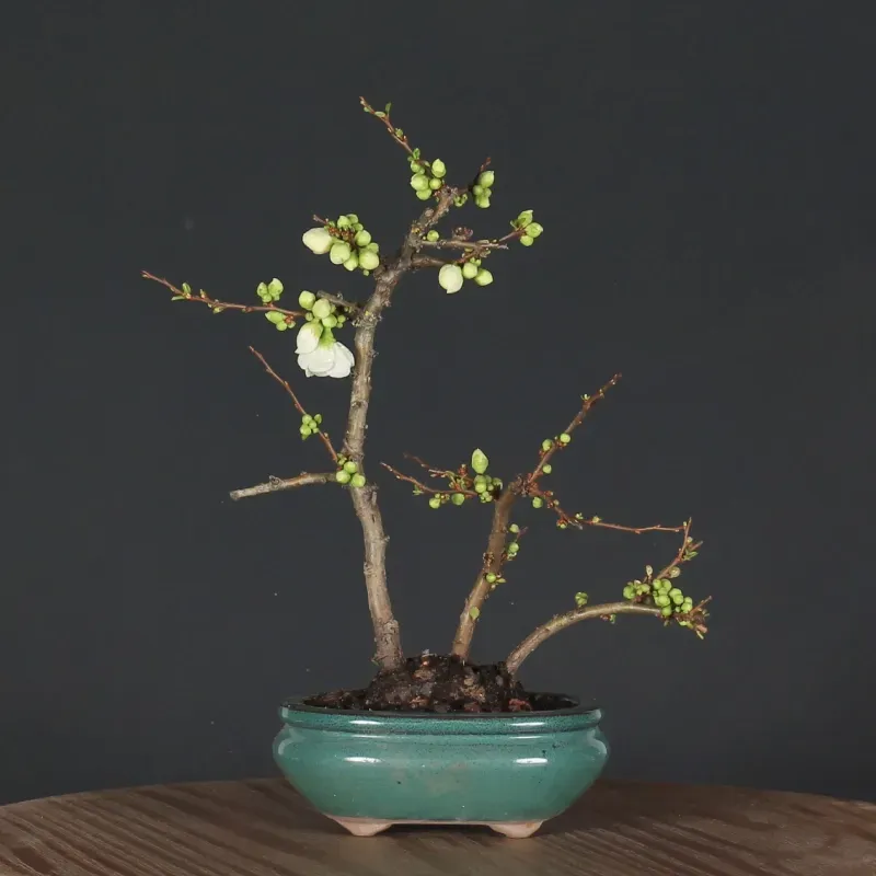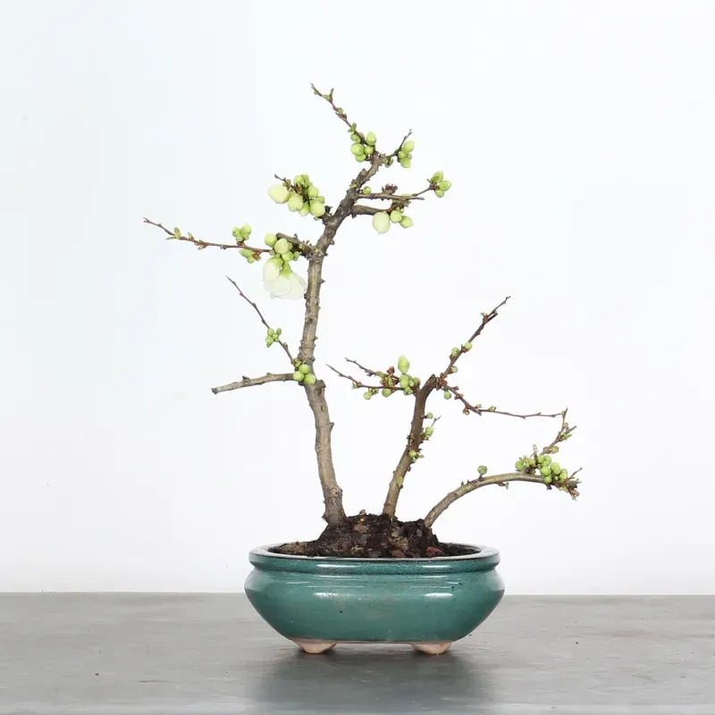 Le cognassier du Japon "Chaenomeles speciosa Nivalis" est un bonsaï très apprécié pour ses magnifiques petites fleurs de couleur blanche qui se développent tôt, à partir du mois de février.