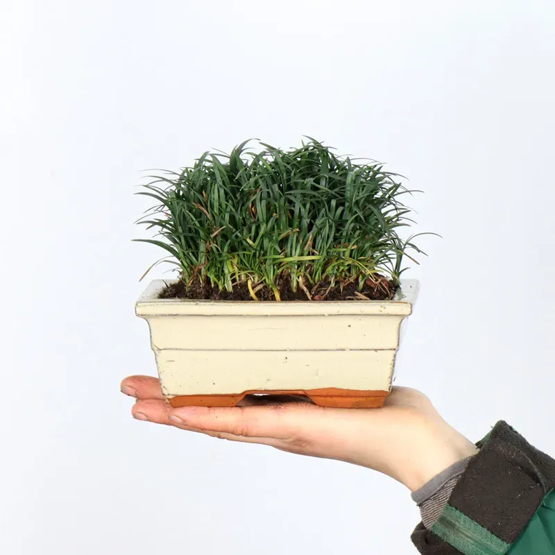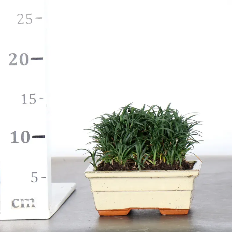 L’ophiopogon est une plante vivace élégante, idéale pour accompagner un bonsaï et enrichir sa mise en scène. Avec son feuillage fin, dense et vert profond, elle apporte une touche naturelle et équilibrée au décor tout en créant un effet de sous-bois miniature. Facile d’entretien, elle apprécie une exposition mi-ombragée et un substrat frais mais bien drainé. Parfaite pour compléter une composition harmonieuse, elle met en valeur le bonsaï sans lui voler la vedette.