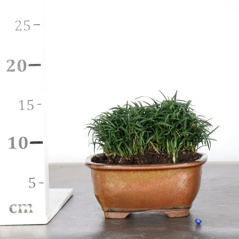 L’ophiopogon est une plante vivace élégante, idéale pour accompagner un bonsaï et enrichir sa mise en scène. Avec son feuillage fin, dense et vert profond, elle apporte une touche naturelle et équilibrée au décor tout en créant un effet de sous-bois miniature. Facile d’entretien, elle apprécie une exposition mi-ombragée et un substrat frais mais bien drainé. Parfaite pour compléter une composition harmonieuse, elle met en valeur le bonsaï sans lui voler la vedette.