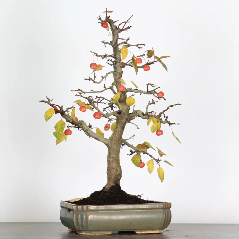 Le bonsai pommier, "Malus Evereste" est très populaire grâce à ses petits fruits décoratifs, simple à cultiver, il pousse rapidement, sa floraison et ses petits fruits sont un véritable délice du printemps jusqu’à l’hiver.