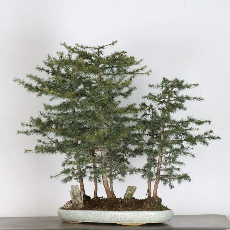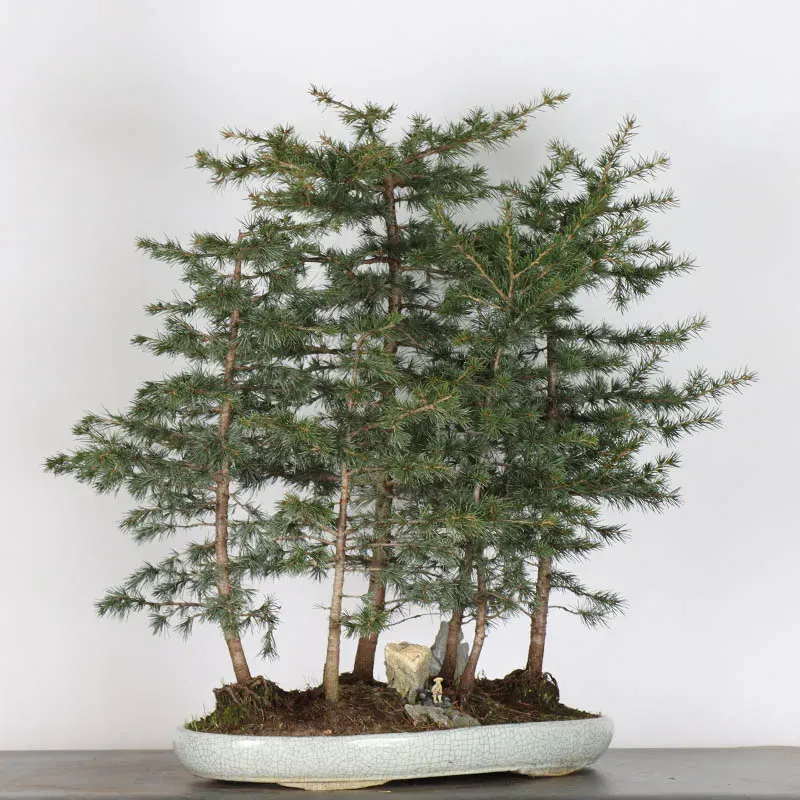 Aujourd’hui, la forêt se compose de six cèdres formant un ensemble harmonieux, vivant et évolutif, plus qu’un simple bonsaï, cette composition est une scène naturelle figée dans le temps. La présence de la souche renforce le réalisme du paysage et rappelle que la beauté d’un bonsaï ne se mesure pas uniquement à sa perfection, mais à l’histoire qu’il raconte.