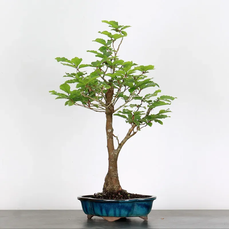 Le Hêtre est un bonsaï à feuilles caduques qui se développe en basse montagne ainsi que dans nos campagnes. Son écorce grisâtre devient davantage rugueuse lorsqu’il prend de l’âge. Son feuillage est marcescent, c’est-à-dire, qu’il demeure attaché à l’arbre même après la mort des feuilles en automne et souvent jusqu’à que le gonflement printanier des bourgeons le fasse tomber.